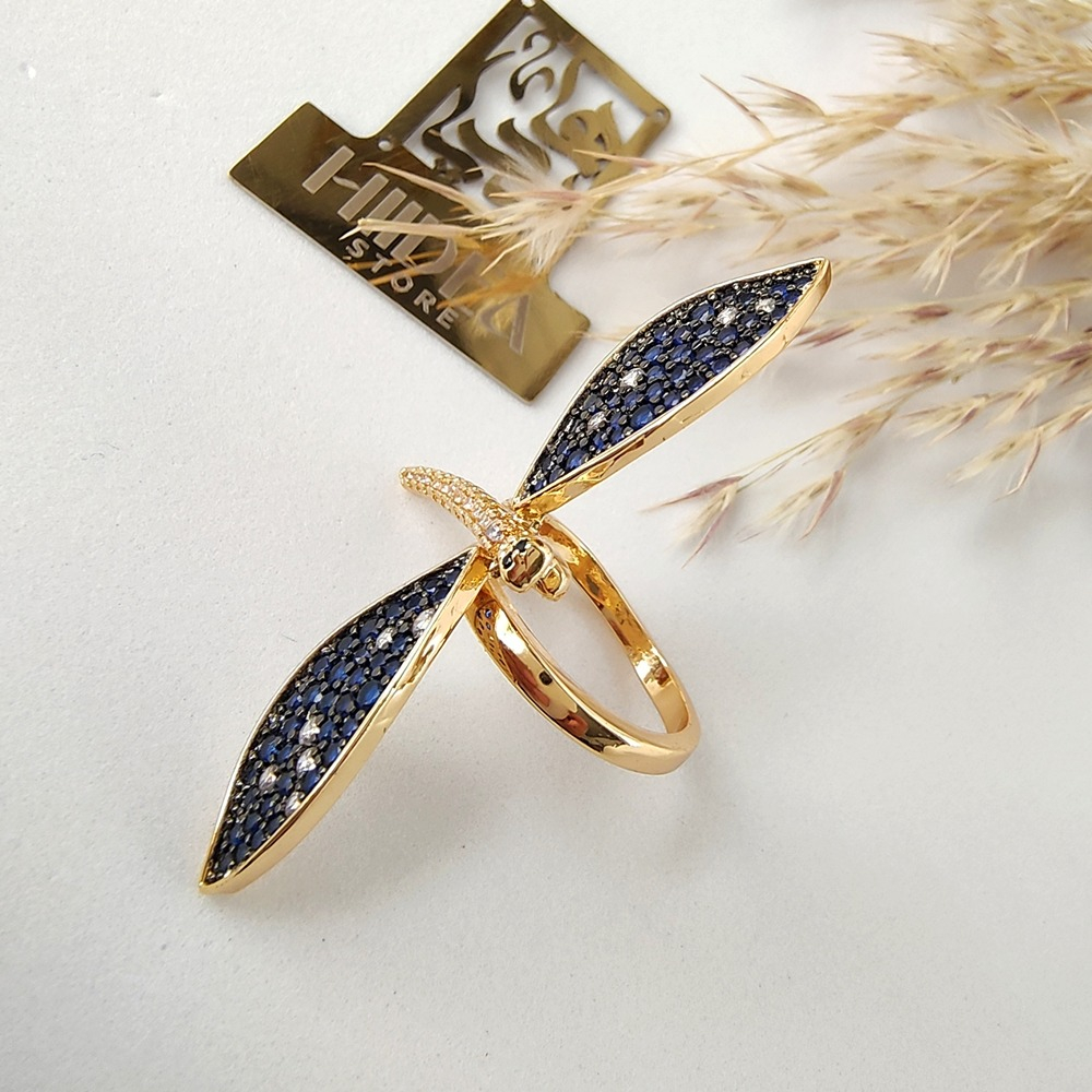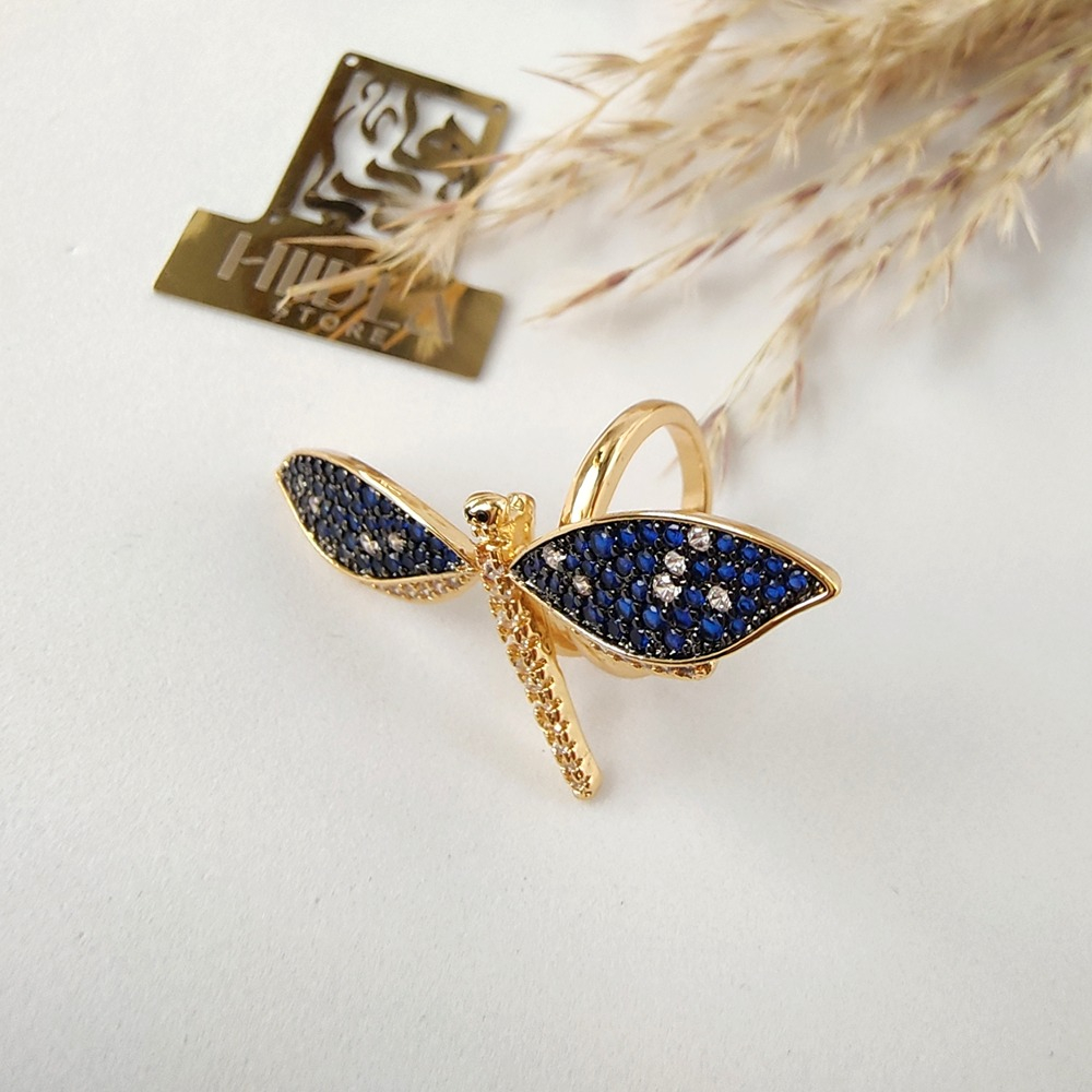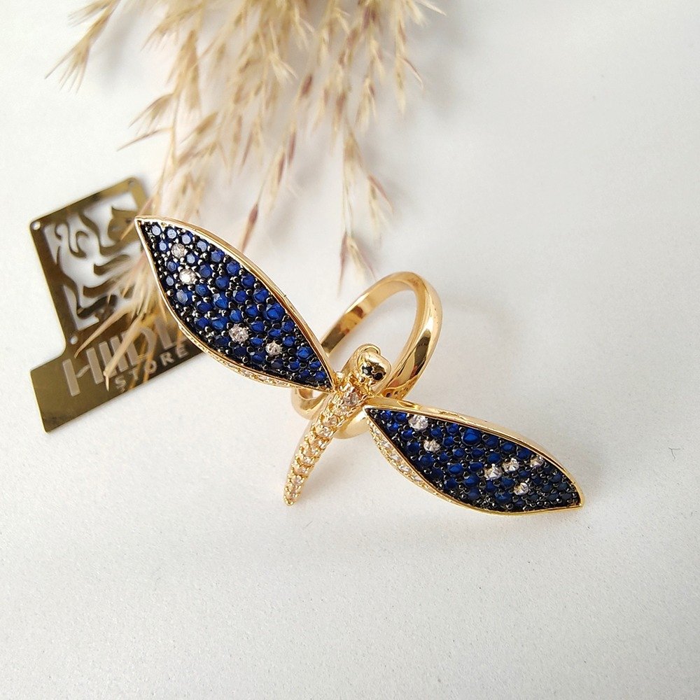 (الصورة حقيقية بدون تعديلات) خاتم فراشة ذهب صيني كوبي لازوردي عالي الجودة مرصع بفصوص الزركون الملونة عالية الدقة + طلاء ذهب عيار18 .