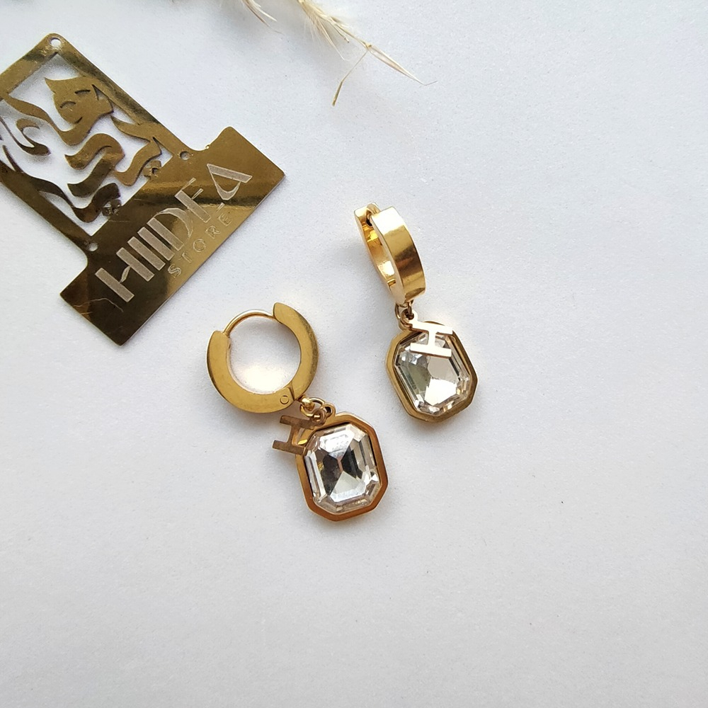 (الصورة حقيقية بدون تعديلات) حلق ستانلس بحجر كريستالي، جودة طلاء عالية ضد الصدأ وتغيير اللون.