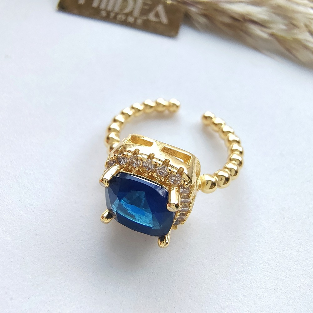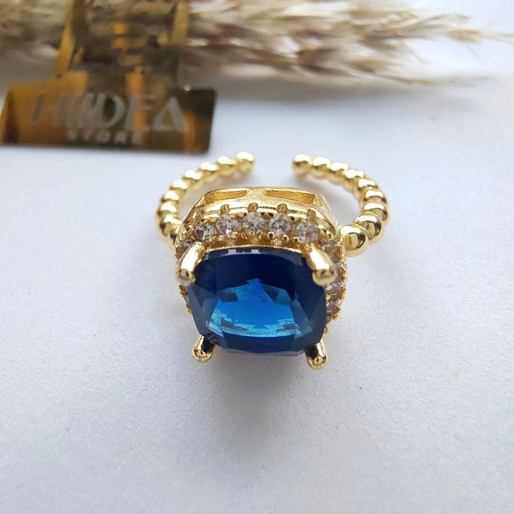 (الصورة حقيقية بدون تعديلات) خاتم بفص ازرق كوبي لازوردي عالي الجودة مرصع بفصوص الزركون عالية الدقة + طلاء ذهب عيار18.