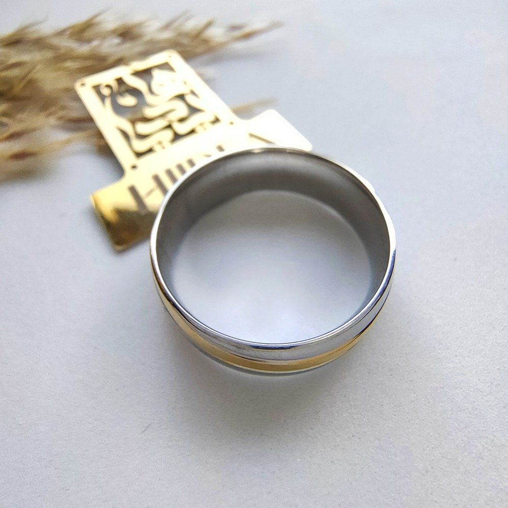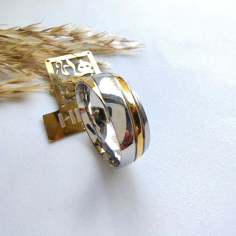 (الصورة حقيقية بدون تعديلات) دبلة ستانلس بنقشة مميزة بجودة طلاء عالية ضد الصدأ وتغيير اللون.