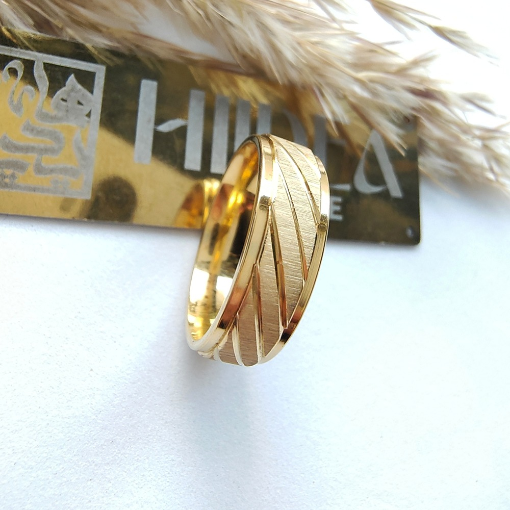 (الصورة حقيقية بدون تعديلات) دبلة ستانلس بنقشة مميزة بجودة طلاء عالية ضد الصدأ وتغيير اللون.