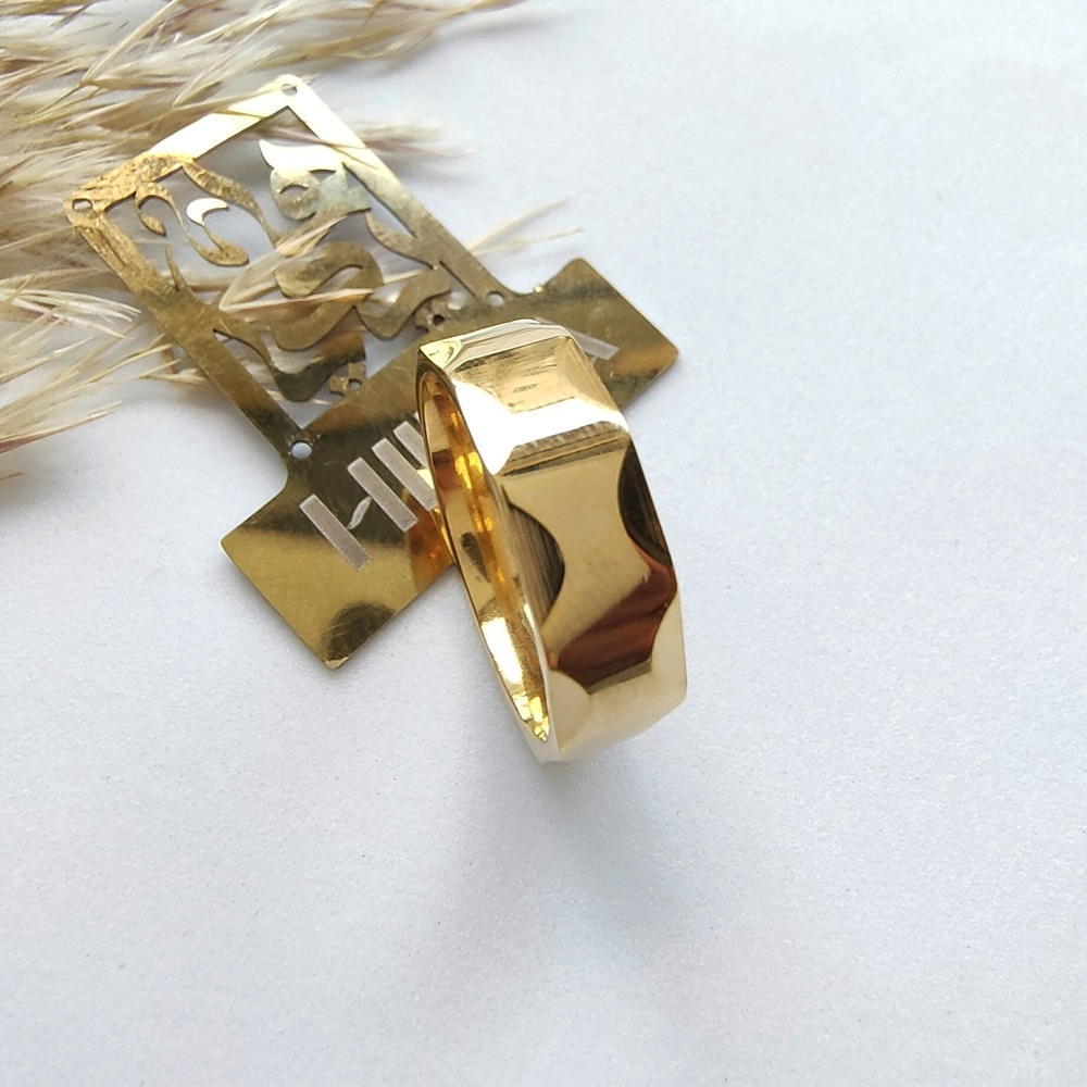 (الصورة حقيقية بدون تعديلات) دبلة ستانلس بنقشة مميزة بجودة طلاء عالية ضد الصدأ وتغيير اللون.