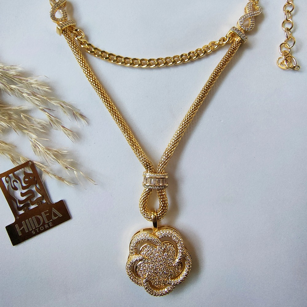 (الصورة حقيقية بدون تعديلات) كوليه وردة ذهب صيني كوبي الدهب عالي الجودة مرصع بفصوص الزركون عالية الدقة + طلاء ذهب عيار18.