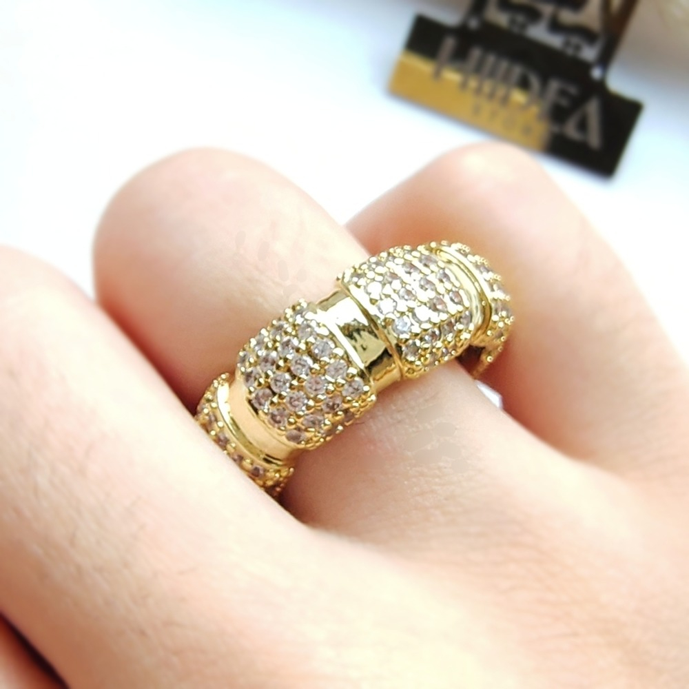 (الصورة حقيقية بدون تعديلات) دبلة بومبيه بفصوص ذهب صيني كوبي لازوردي عالي الجودة مرصع بفصوص الزركون عالية الدقة + طلاء ذهب عيار18 .