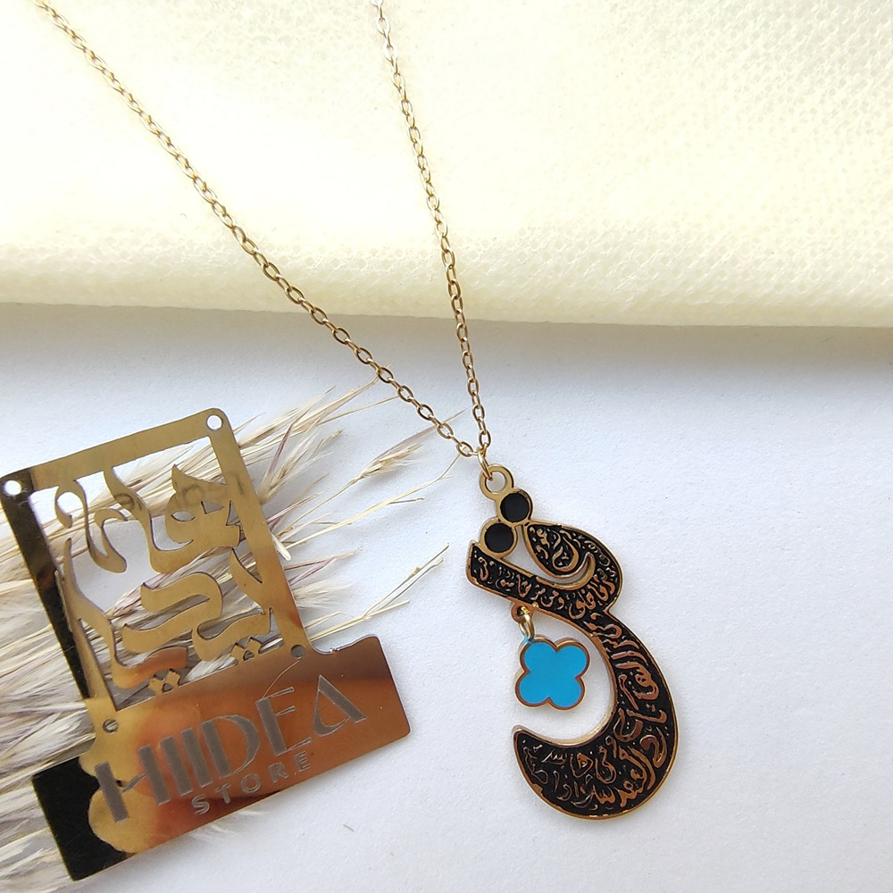 (الصورة حقيقية بدون تعديلات) سلسلة ستانلس (قُلۡ أَعُوذُ بِرَبِّ ٱلۡفَلَقِ ) بتصميم عربي عالية الجودة كوبي الدهب مصنوعة من الاستانلس البيور الذهبي عالي الجودة.