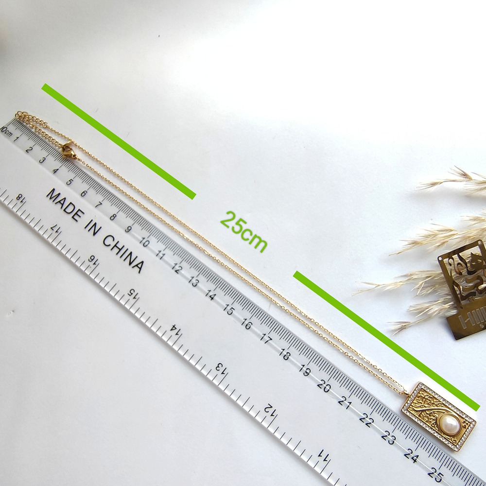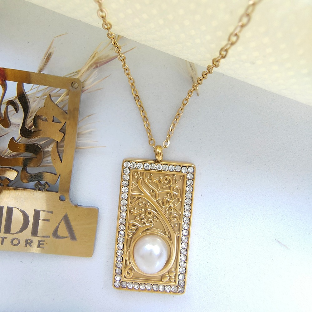 (الصورة حقيقية بدون تعديلات) سلسلة ستانلس (قُلۡ أَعُوذُ بِرَبِّ ٱلۡفَلَقِ ) بتصميم عربي مرصعة باللولي ومطعمة بفصوص ميكرو دقيقة عالية الجودة كوبي الدهب مصنوعة من الاستانلس البيور الذهبي عالي الجودة.