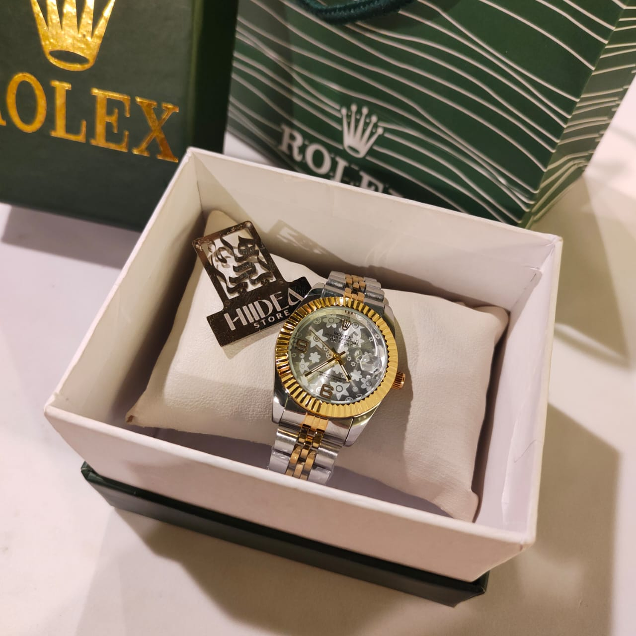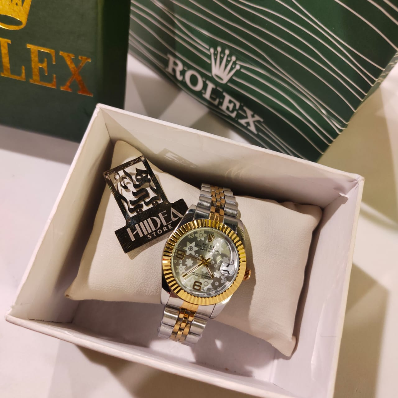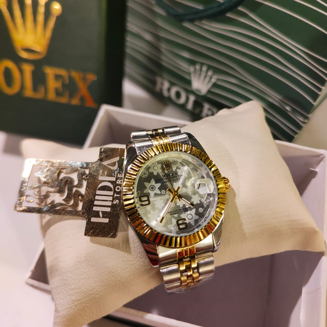 (الصورة حقيقية بدون تعديلات) ساعة رولكس هاي كوبي مقاس 32ملل تتميز الساعة الرولكس بالتصميم الملكي الجديد الراقي ومينا مميزة  واوستيك معدن  ستانلس مقاوم للصداء مع طلاء بجودة ممتازة مع عداد للتاريخ وقفل الساعة كوبي للساعة الرولكس الاوريجنال ومختوم ، تصلك الساعة في بوكس وشنطة بماركة رولكس