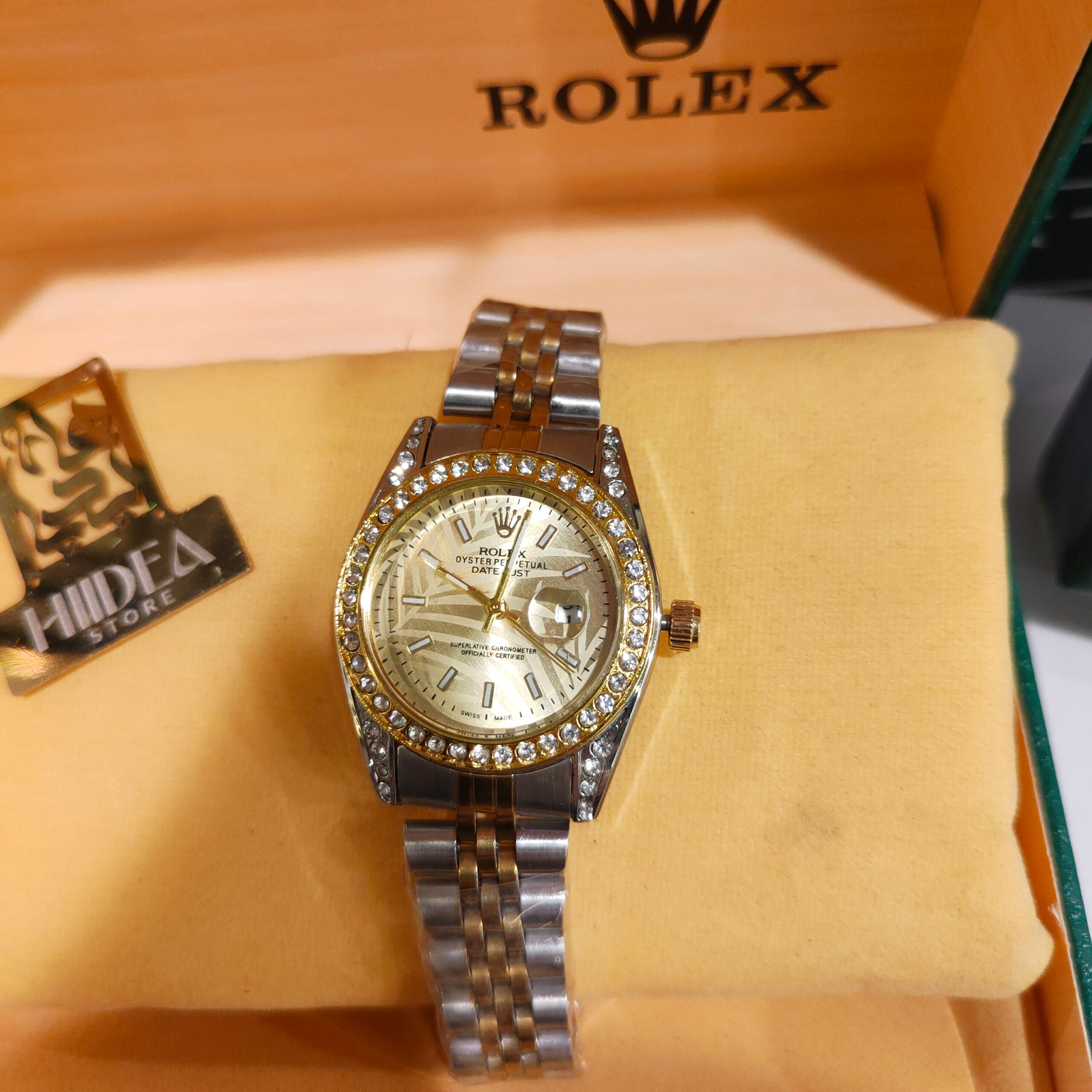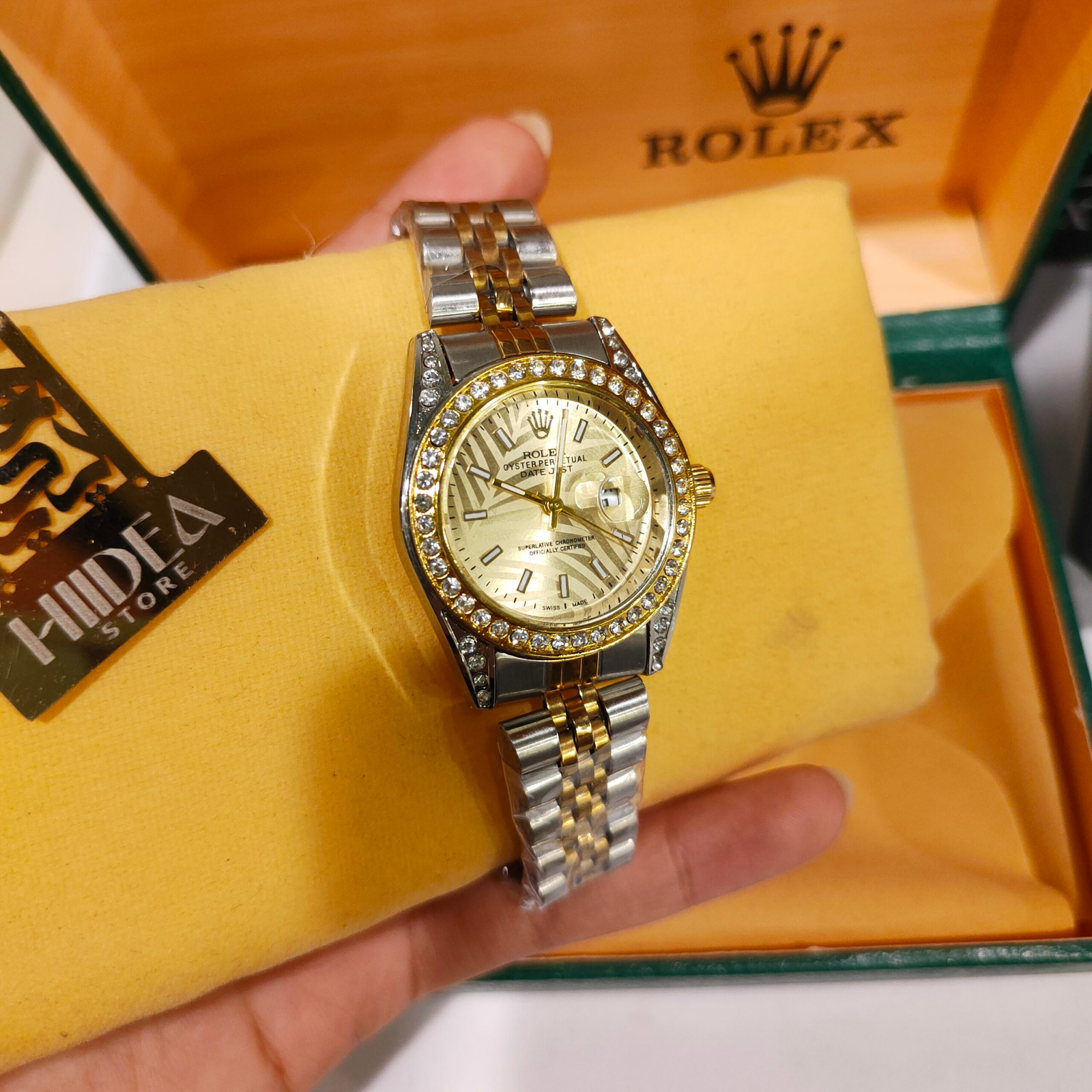 ساعة Rolex هاي كوبي مرصعة بفصوص كريستال32 ملل