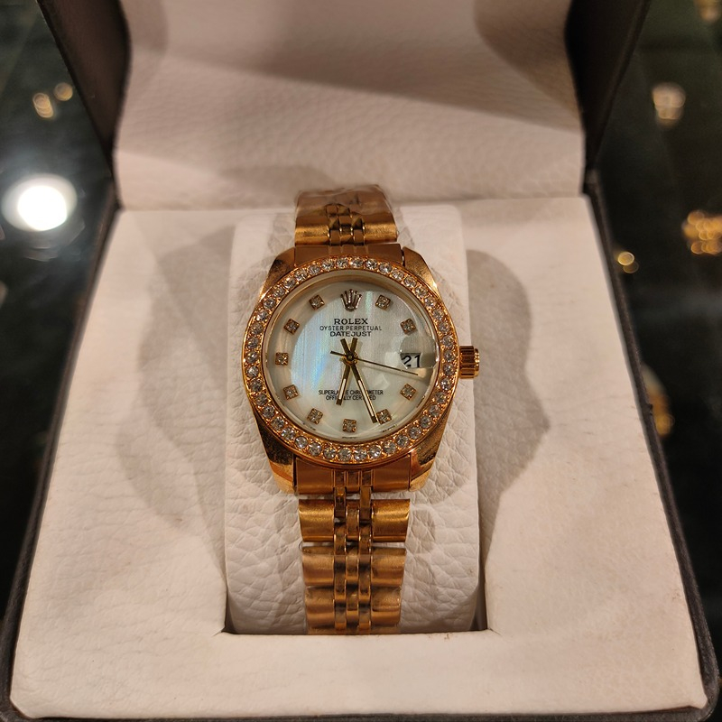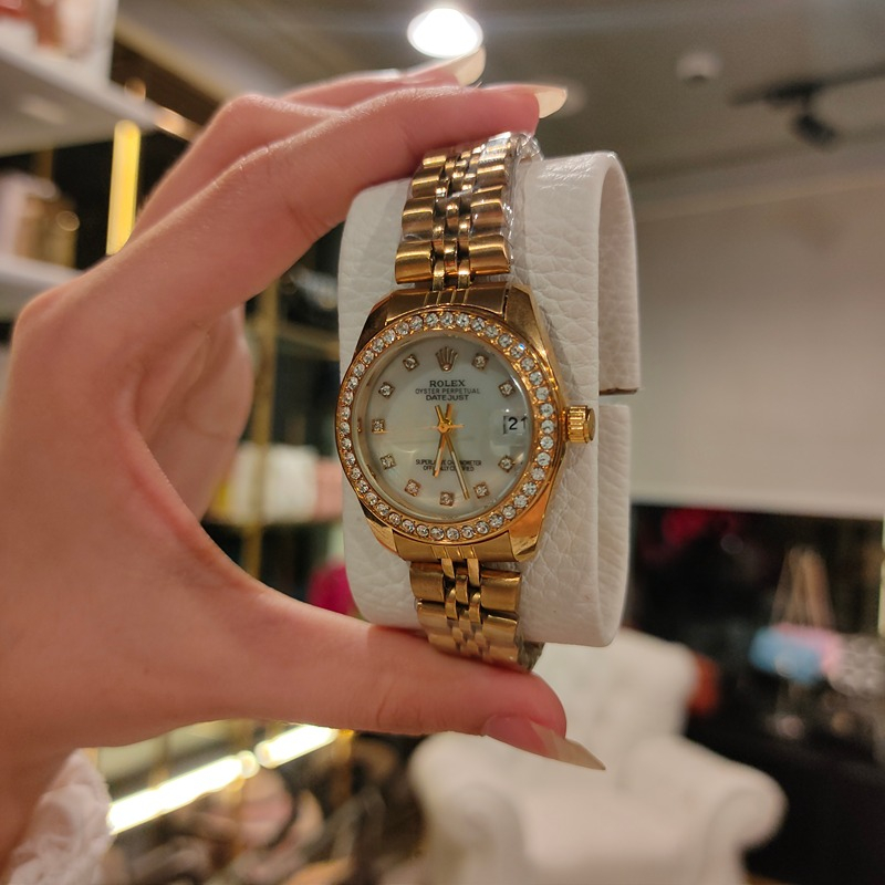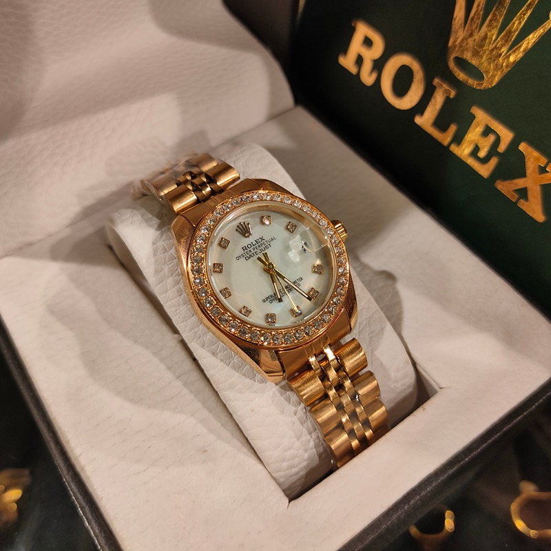 (الصورة حقيقية بدون تعديلات) ساعة رولكس هاي كوبي مقاس 32ملل تتميز الساعة الرولكس بالتصميم الملكي الجديد الراقي ومينا مميزةواوستيك معدن ذهبي ستانلس مقاوم للصداء مع طلاء بجودة ممتازة مع عداد للتاريخ وقفل الساعة كوبي للساعة الرولكس الاوريجنال ومختوم ، تصلك الساعة في بوكس وشنطة بماركة رولكس