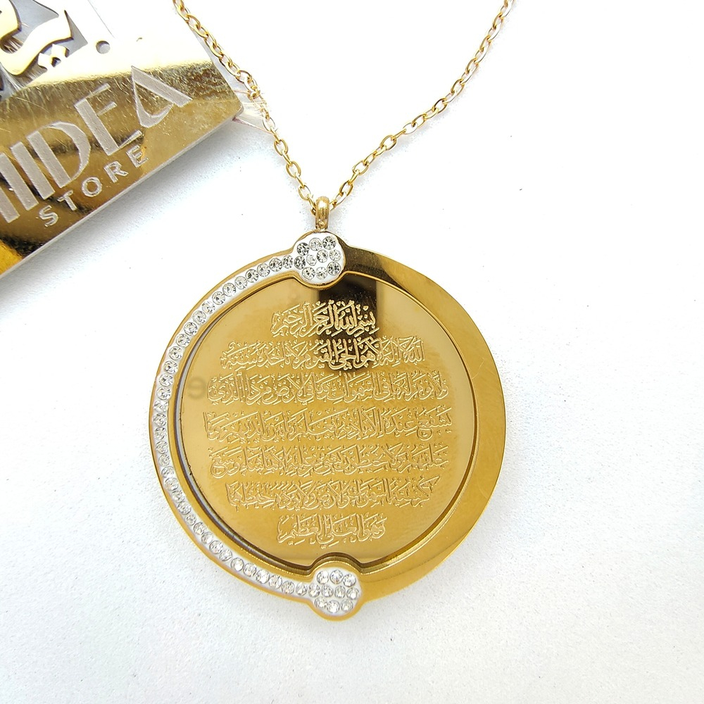 (الصورة حقيقية بدون تعديلات) سلسلة ستانلس آية الكرسي بتصميم عربي ومطعمة بفصوص ميكرو دقيقة عالية الجودة كوبي الدهب مصنوعة  من الاستانلس البيور الذهبي عالي الجودة.
