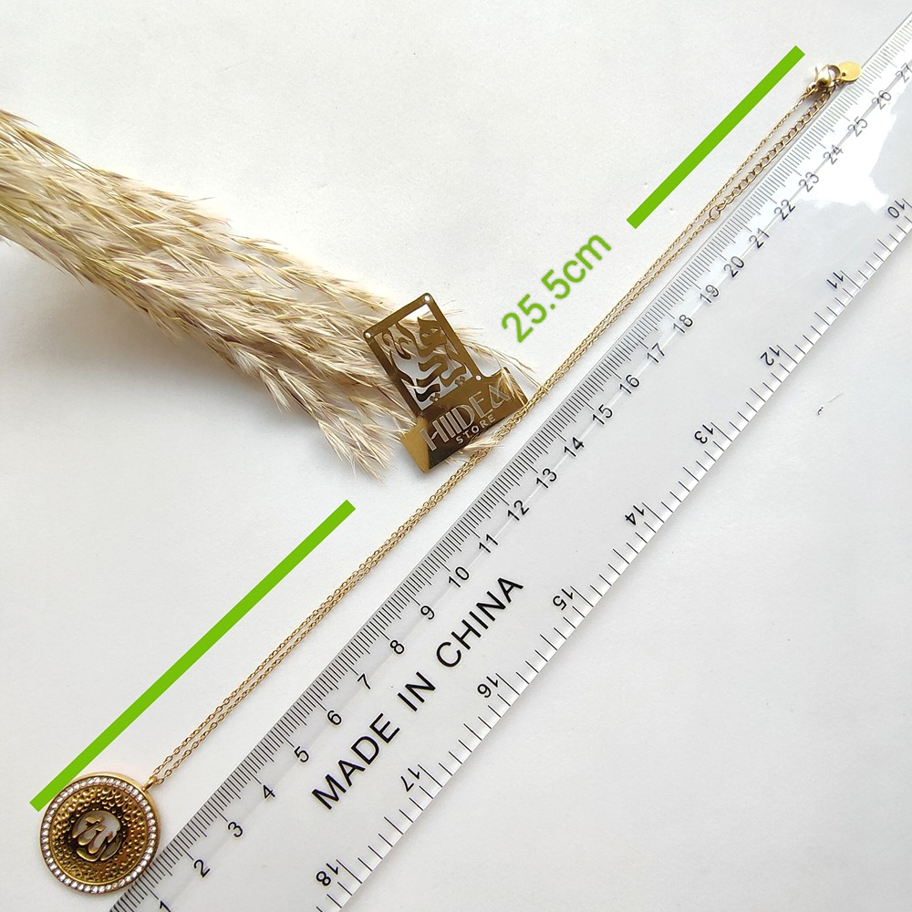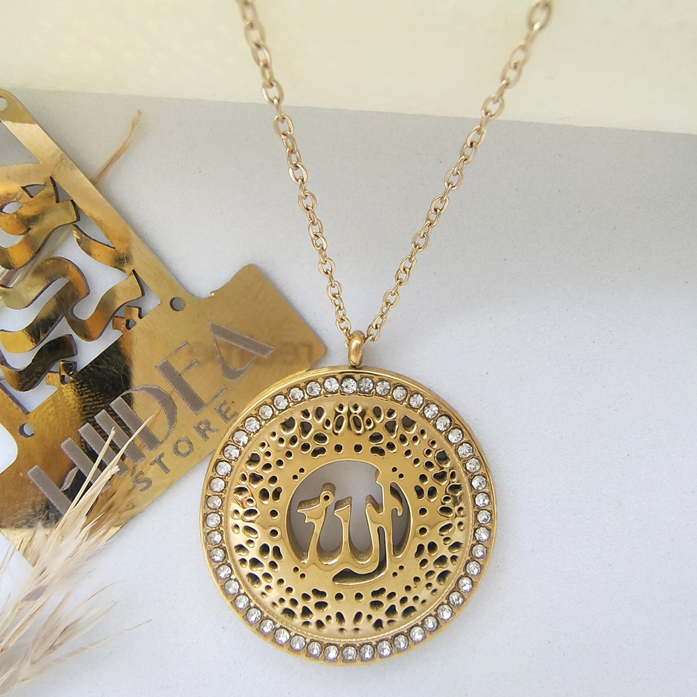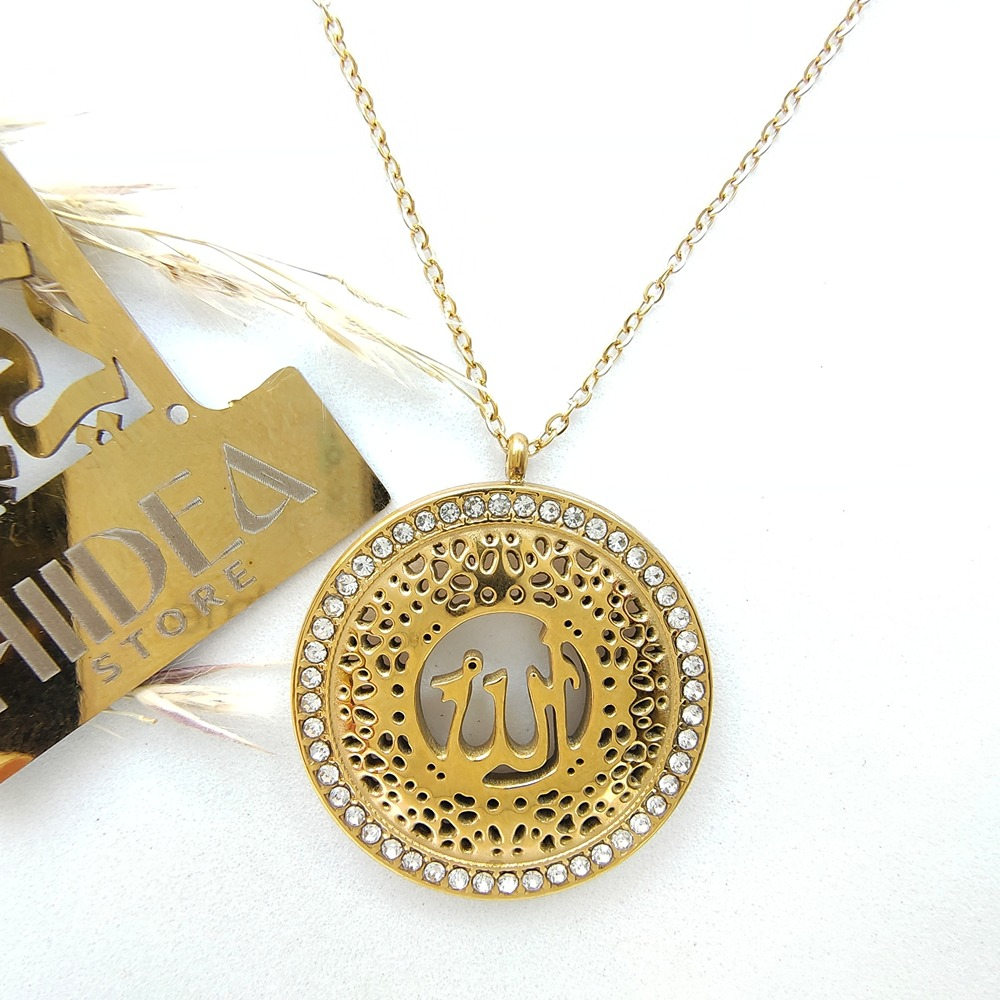 (الصورة حقيقية بدون تعديلات) سلسلة ستانلس لفظ الجلالة (الله ) بتصميم عربي ومطعمة بفصوص ميكرو دقيقة عالية الجودة كوبي الدهب مصنوعة من الاستانلس البيور الذهبي عالي الجودة.
