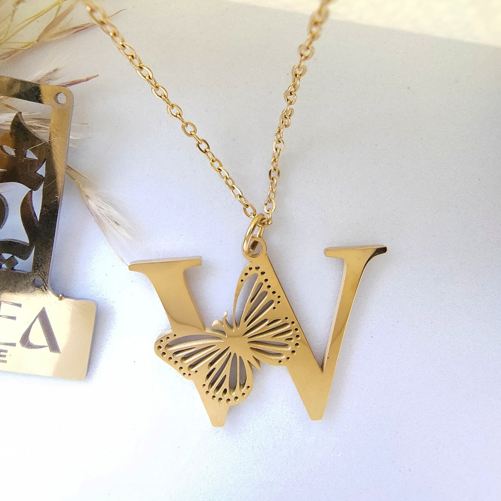 (الصورة حقيقية بدون تعديلات) سلسلة ستانلس حرف W بتصميم مختلف من الاستانلس البيور الذهبي عالي الجودة .