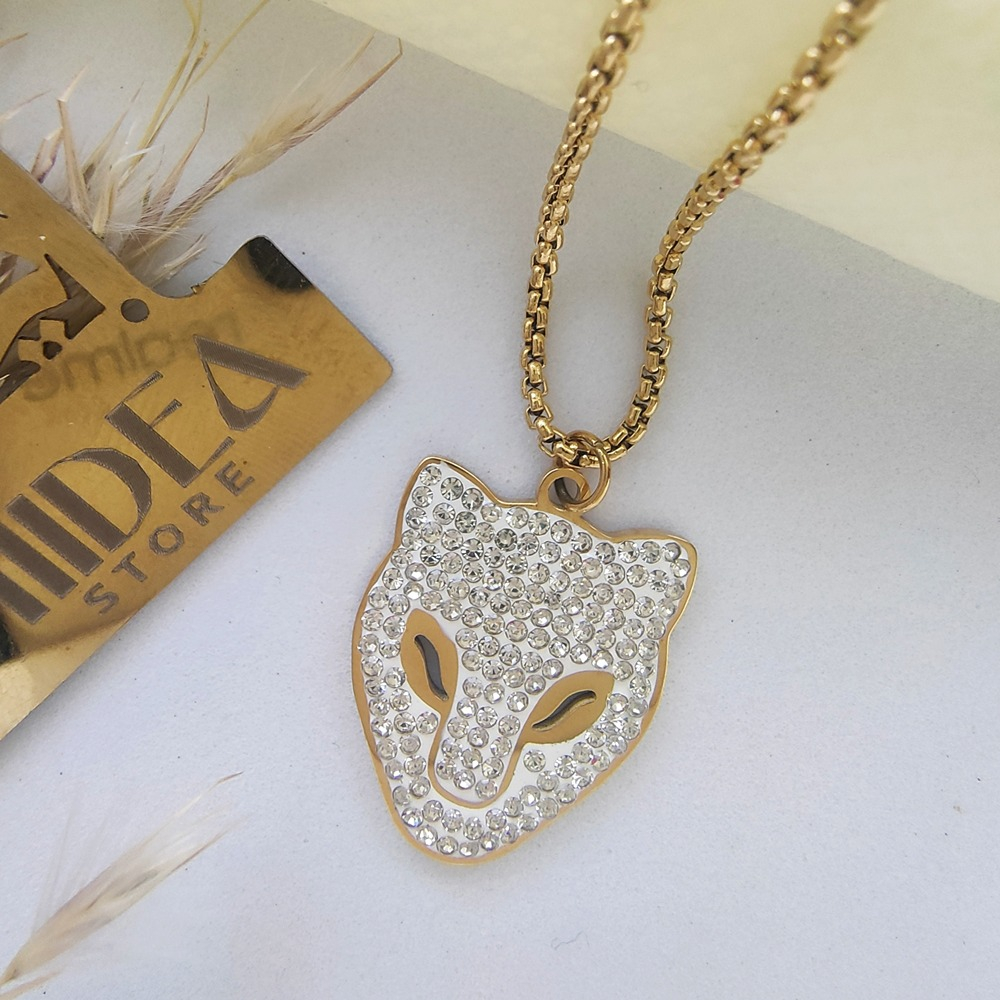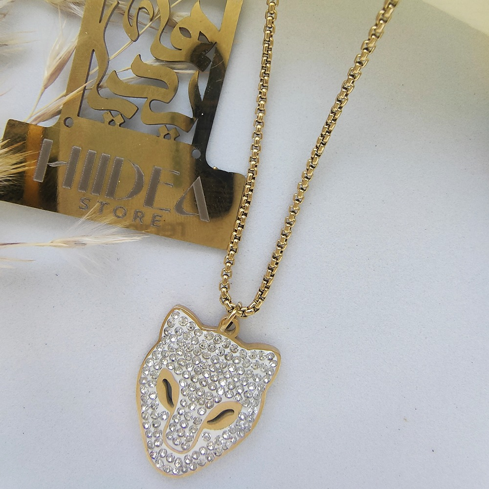 (الصورة حقيقية بدون تعديلات) سلسلة ستانلس وجه فهد بتصميم مميز شيك جدا مرصع بفصوص ميكرو عالية الدقة كوبي الدهب مصنوعة من الاستانلس البيور عالي الجودة، مع طلاء دهب .