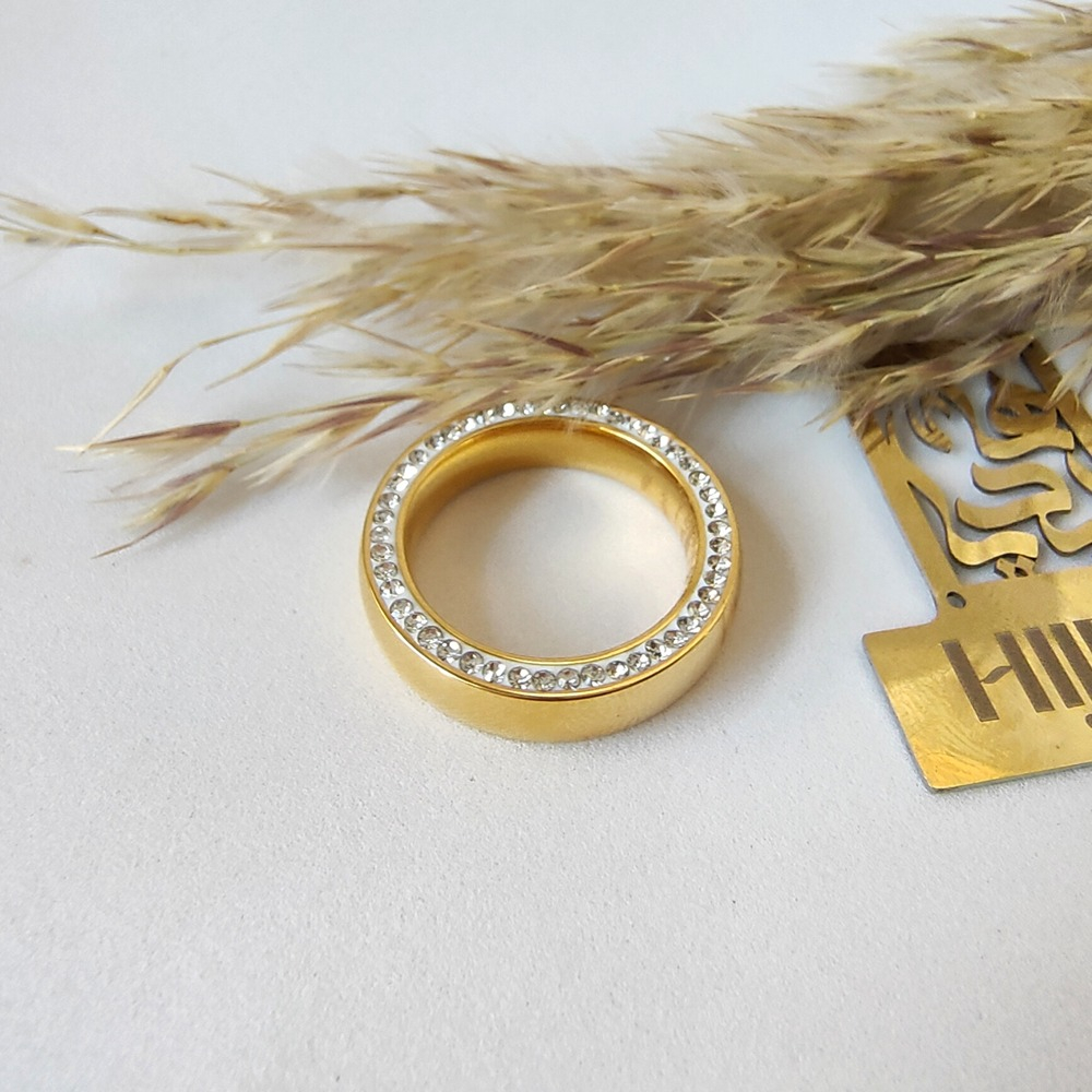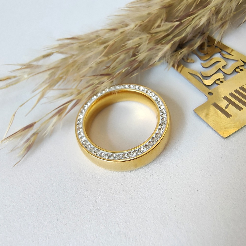 (الصورة حقيقية بدون تعديلات) دبلة ستانلس بفصوص كريستالية ميكرو عالية الدقة بجودة طلاء عالية ضد الصدأ وتغيير اللون.