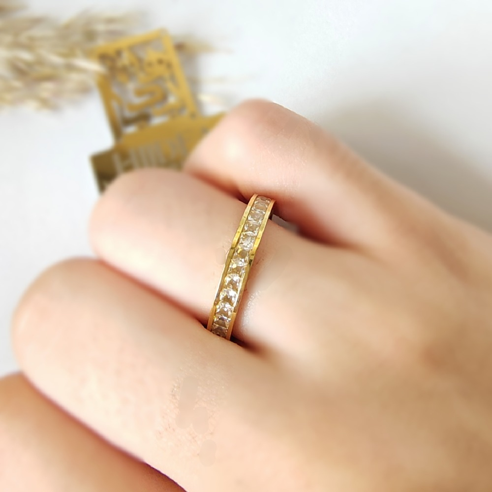 (الصورة حقيقية بدون تعديلات) دبلة ستانلس بفصوص مميزة بجودة طلاء عالية ضد الصدأ وتغيير اللون.