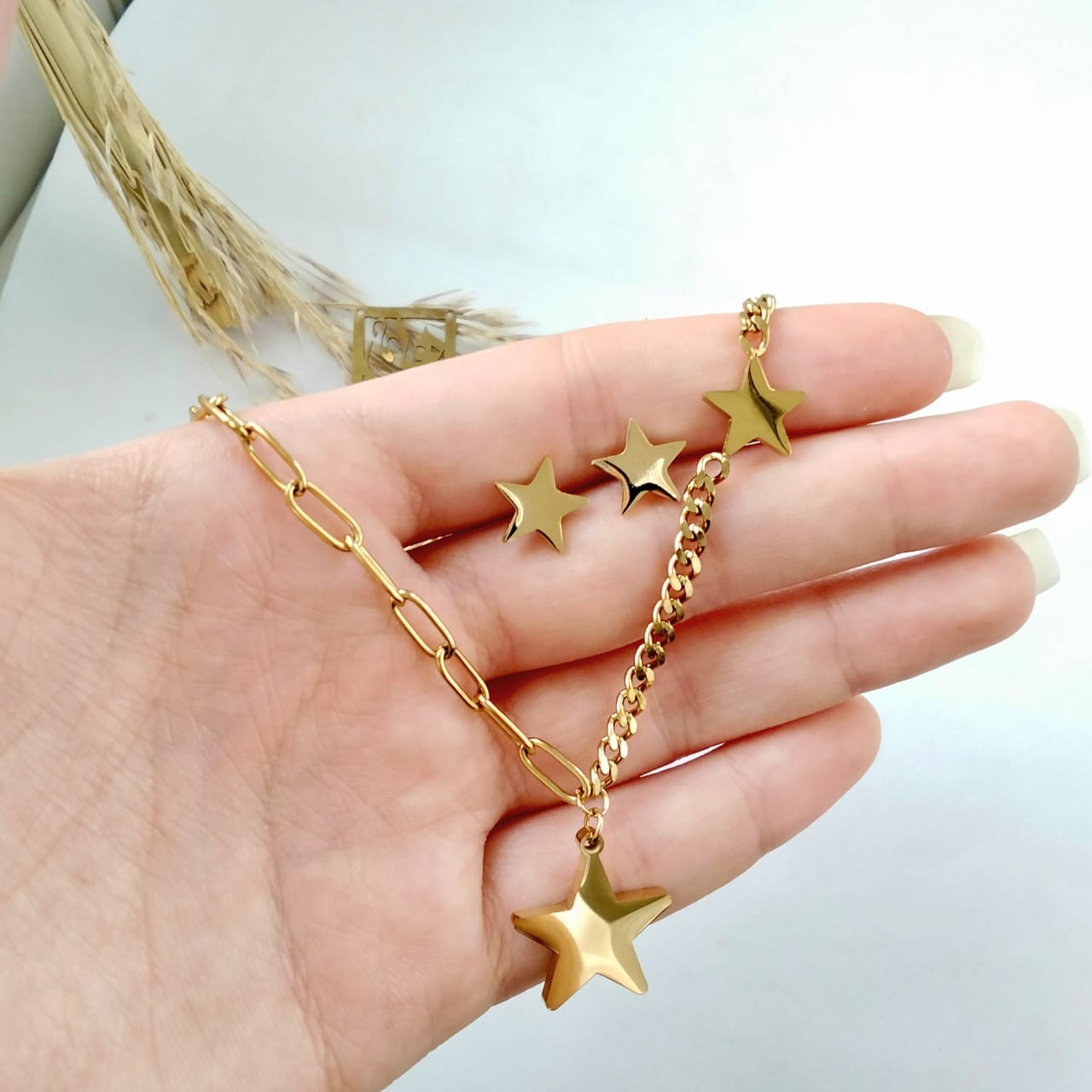 (الصورة حقيقية بدون تعديلات) طقم ستانلس نجمه (كوليه +حلق) عالي الجودة مصنع من الاستانلس البيور عالي الجودة المعالج ضد الصدأ + طلاء بجودة عالية
