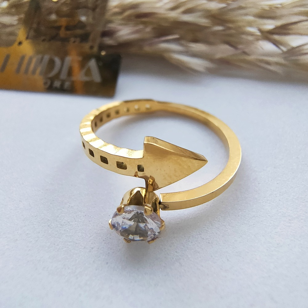 (الصورة حقيقية بدون تعديلات) خاتم ستانلس ترندي مفتوح مرصع بفص كريستالي عالي الجودة مصنع من الاستانلس البيور عالي الجودة المعالج ضد الصدأ + طلاء بجودة عالية