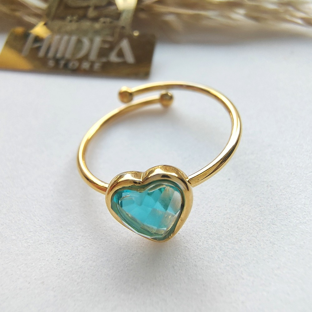 (الصورة حقيقية بدون تعديلات) خاتم ستانلس ترندي مفتوح عالي الجودة مصنع من الاستانلس البيور عالي الجودة المعالج ضد الصدأ مرصع بحجر كريستالي + طلاء بجودة عالية
