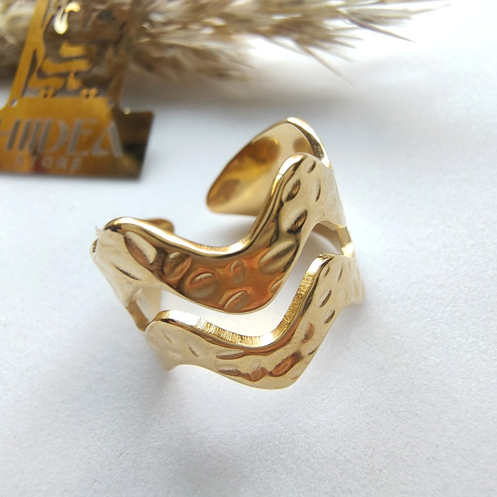 (الصورة حقيقية بدون تعديلات) خاتم ستانلس ترندي مفتوح عالي الجودة مصنع من الاستانلس البيور عالي الجودة المعالج ضد الصدأ + طلاء بجودة عالية