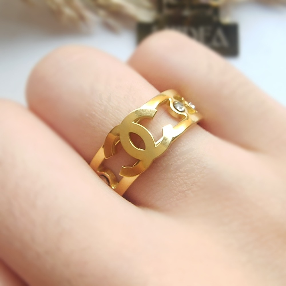 (الصورة حقيقية بدون تعديلات) خاتم ستانلس ترندي مرصع بفصوص كرستال عالي الجودة مصنع من الاستانلس البيور عالي الجودة المعالج ضد الصدأ + طلاء بجودة عالية