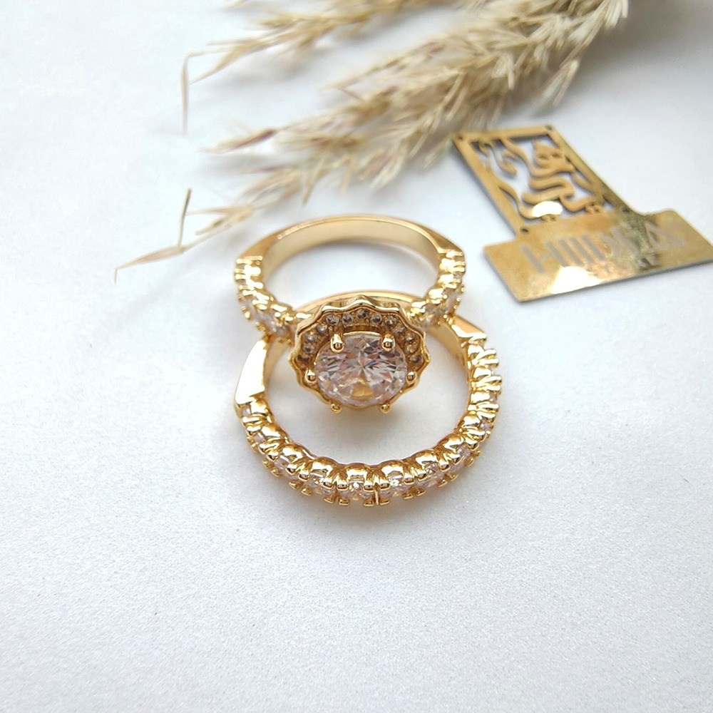 (الصورة حقيقية بدون تعديلات) توينز العروسة الدهبي ، دهب صيني بفصوص ميكرو سيلفر كريستالية عالية  الجودة كوبي الدهب  طلاء ممتازة ، طلاء ذهب عيار 18.