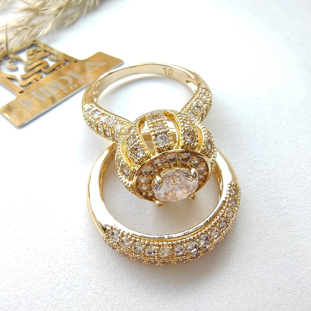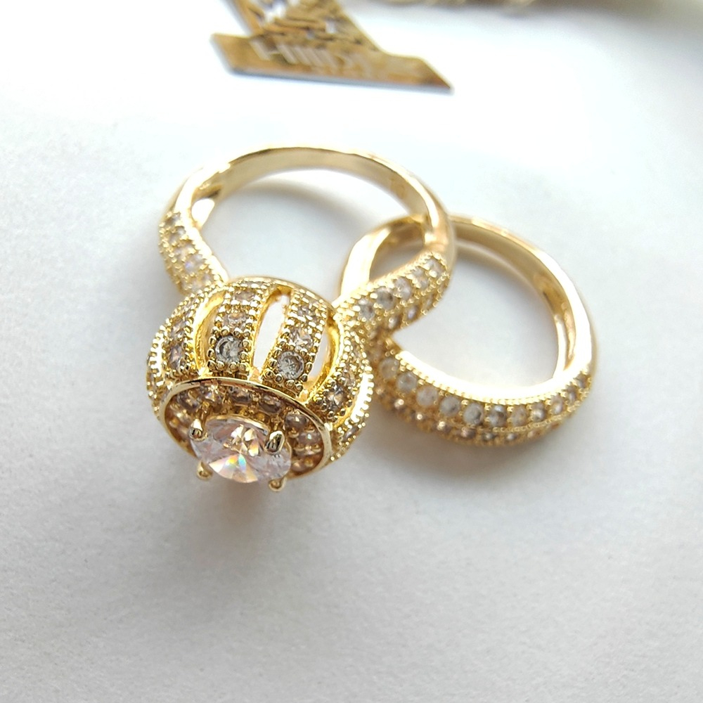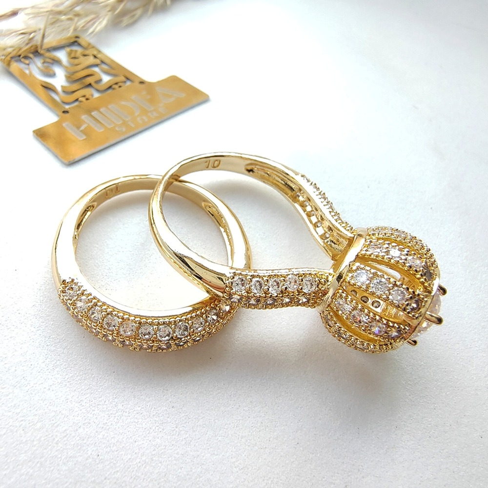 (الصورة حقيقية بدون تعديلات) توينز العروسة الدهبي ، دهب صيني بفصوص ميكرو سيلفر كريستالية عالية  الجودة كوبي الدهب  طلاء ممتازة، طلاء ذهب عيار 18.