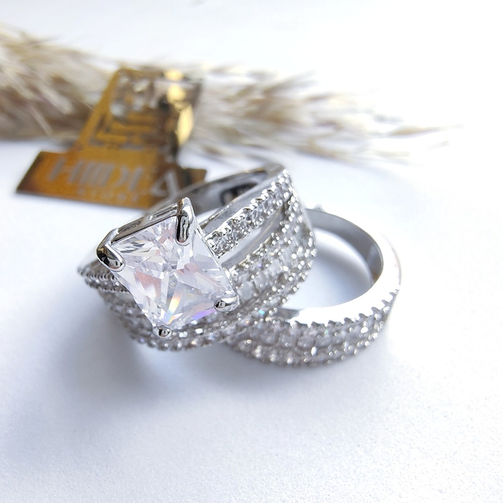 (الصورة حقيقية بدون تعديلات) توينز العروسة سيلفر دهب صيني بفصوص ميكرو سيلفر كريستالية عالية الجودة كوبي الدهب طلاء ممتازة.